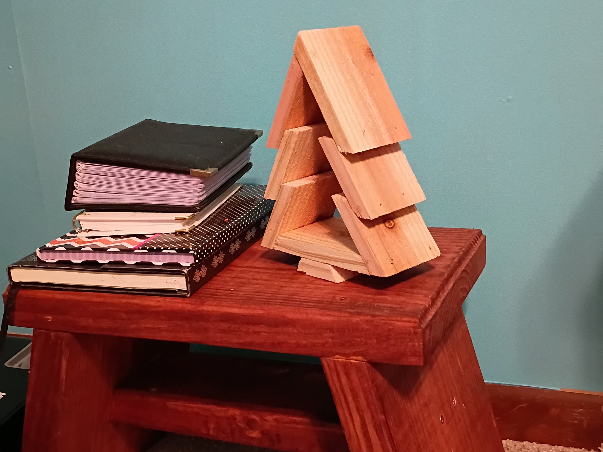Eight inch tall Christmas tree made of cedar.