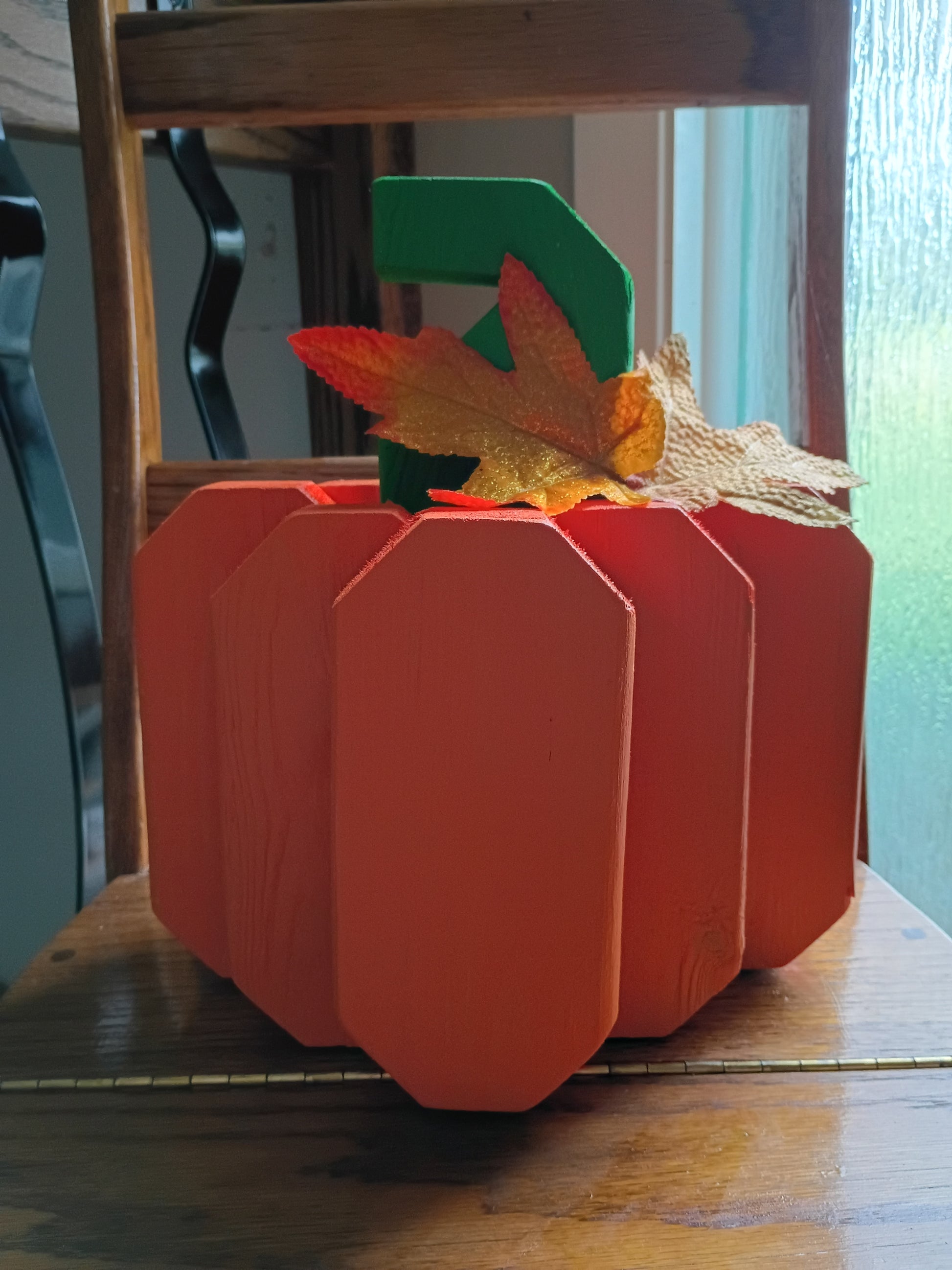 A free standing pumpkin perfect for the fall season months. Made as an indoor or outdoor decoration.