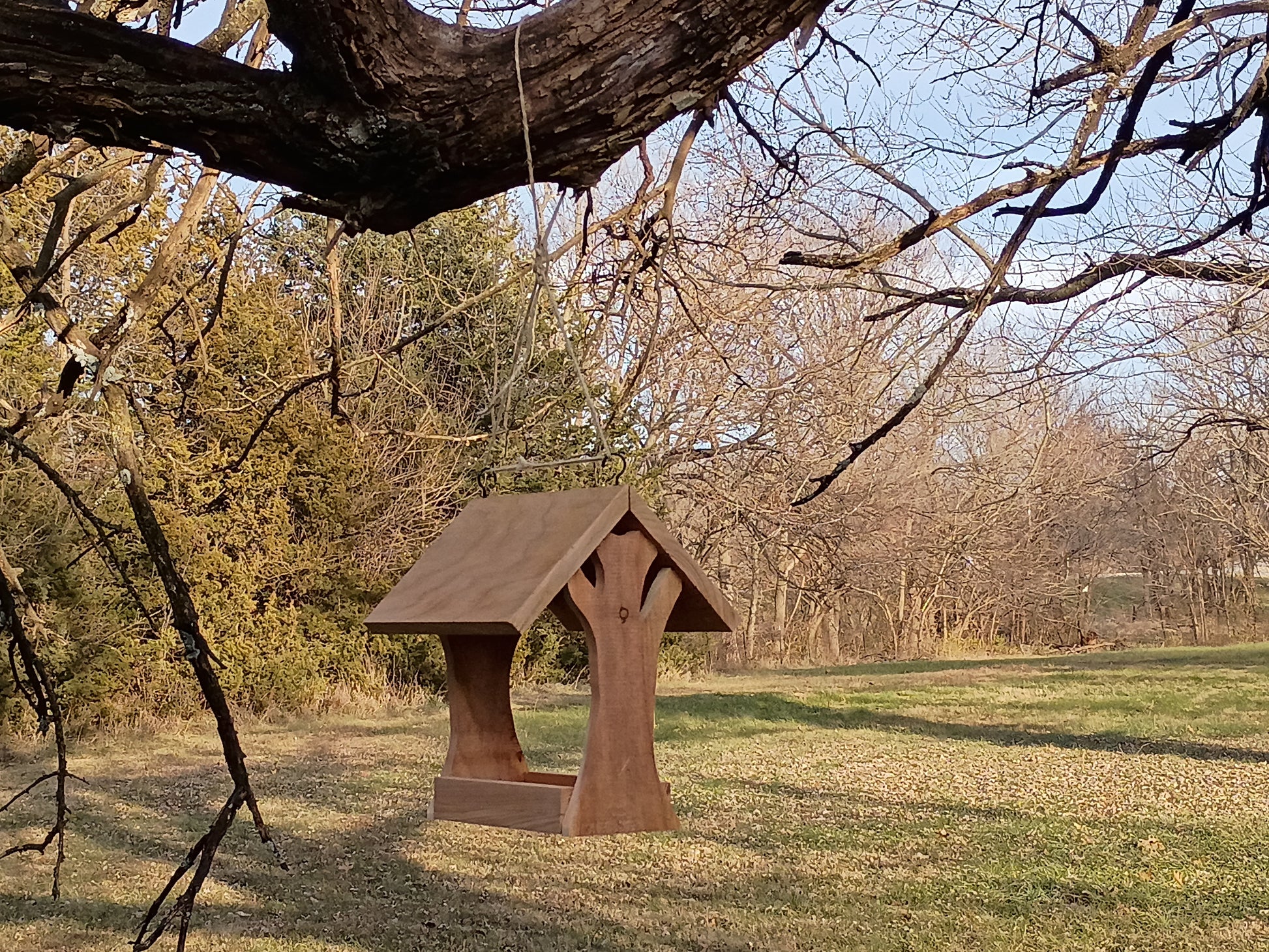 Bird feeder with tree motif sides for that unique outdoorsy feeling.